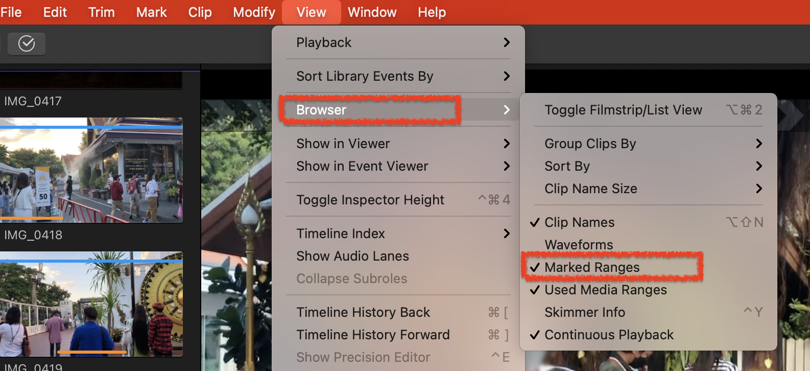 - View -> Browser -> Marked Ranges
