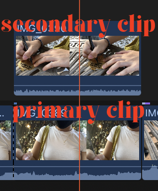 - primary clip 위에 secondary clip을 붙여 넣고 싶을 때