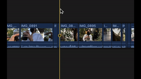 - 자르고 싶은 부분에 Playhead를 옮겨 놓고 Option + [ - 클립의 뒷부분을 자르고 싶은 경우