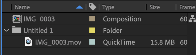 - 컴포지션 옆에 폴더 모양 버튼 클릭